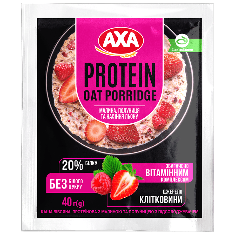 Описание Каша АХА вівсяна протеїнова з малиною та полуницею з підсолоджувачем 40г