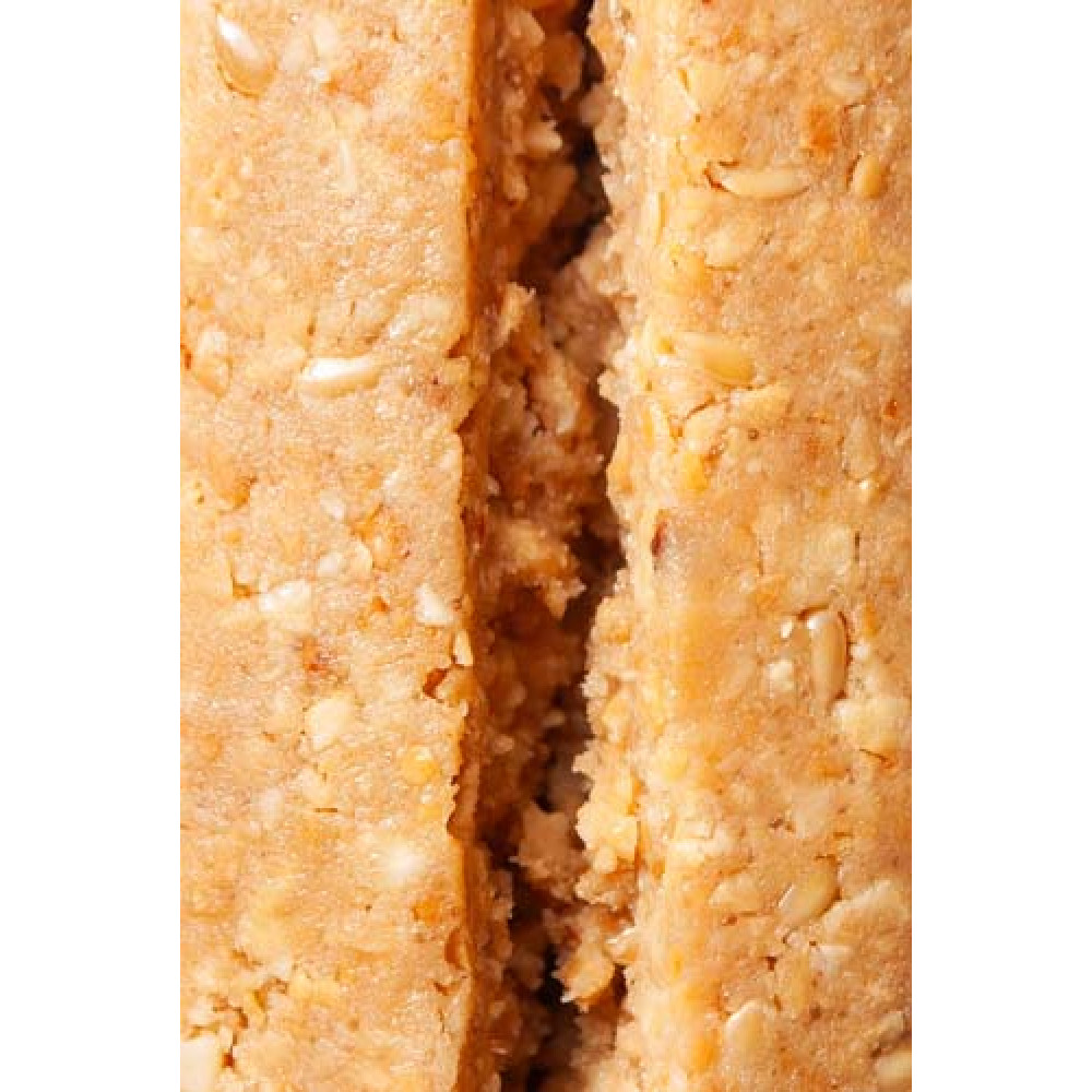 Состав: ядра бобов арахиса (48,7%), изолят протеина горохового (13,3%), растительный глицерин, пребиотик инулин, подсластитель эритритол, клетчатка тапиоки, семена льна (3,1%), розовая соль (0,2%), натуральный ароматизатор ванили. Может содержать следы орехов (кешью, фундук, миндаль). Без глютена. На растительной основе.