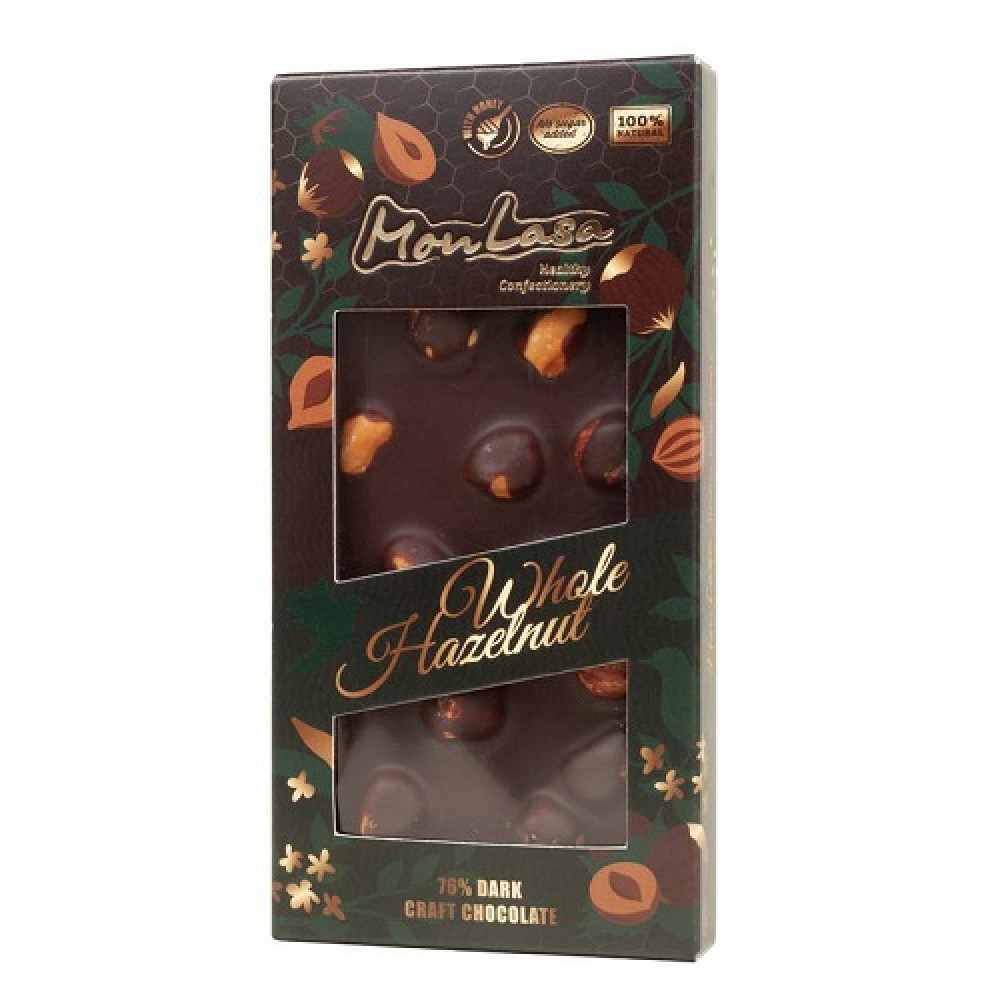 Описание Шоколад MonLasa чорний 76% з цілим фундуком, 80г