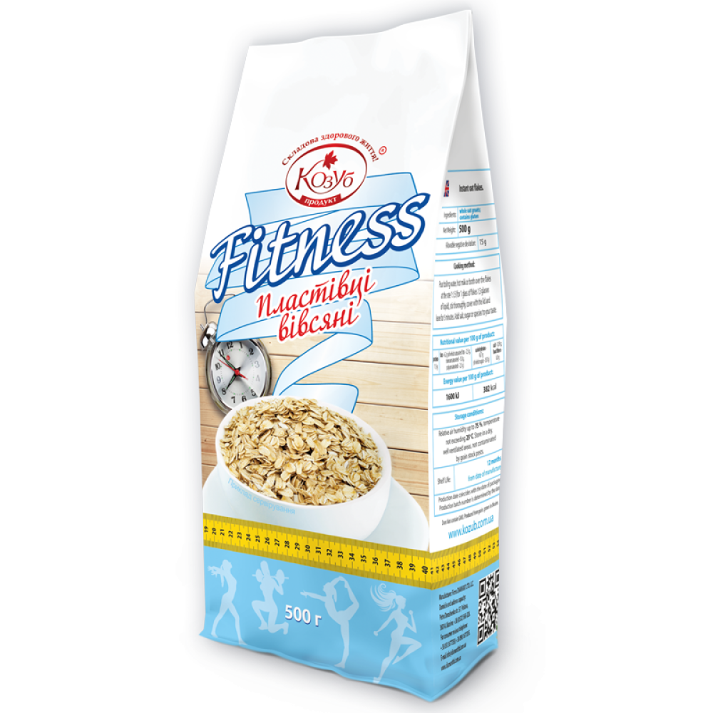 Характеристики Пластівці Козуб Продукт вівсяні Фітнес Класичний в пакеті 500 г