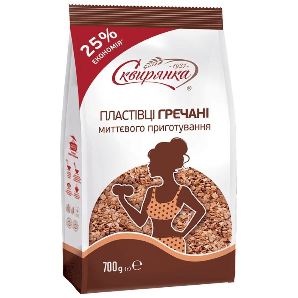 Описание Пластівці Сквирянка гречані, що не потребують варіння фас. 0,7кг