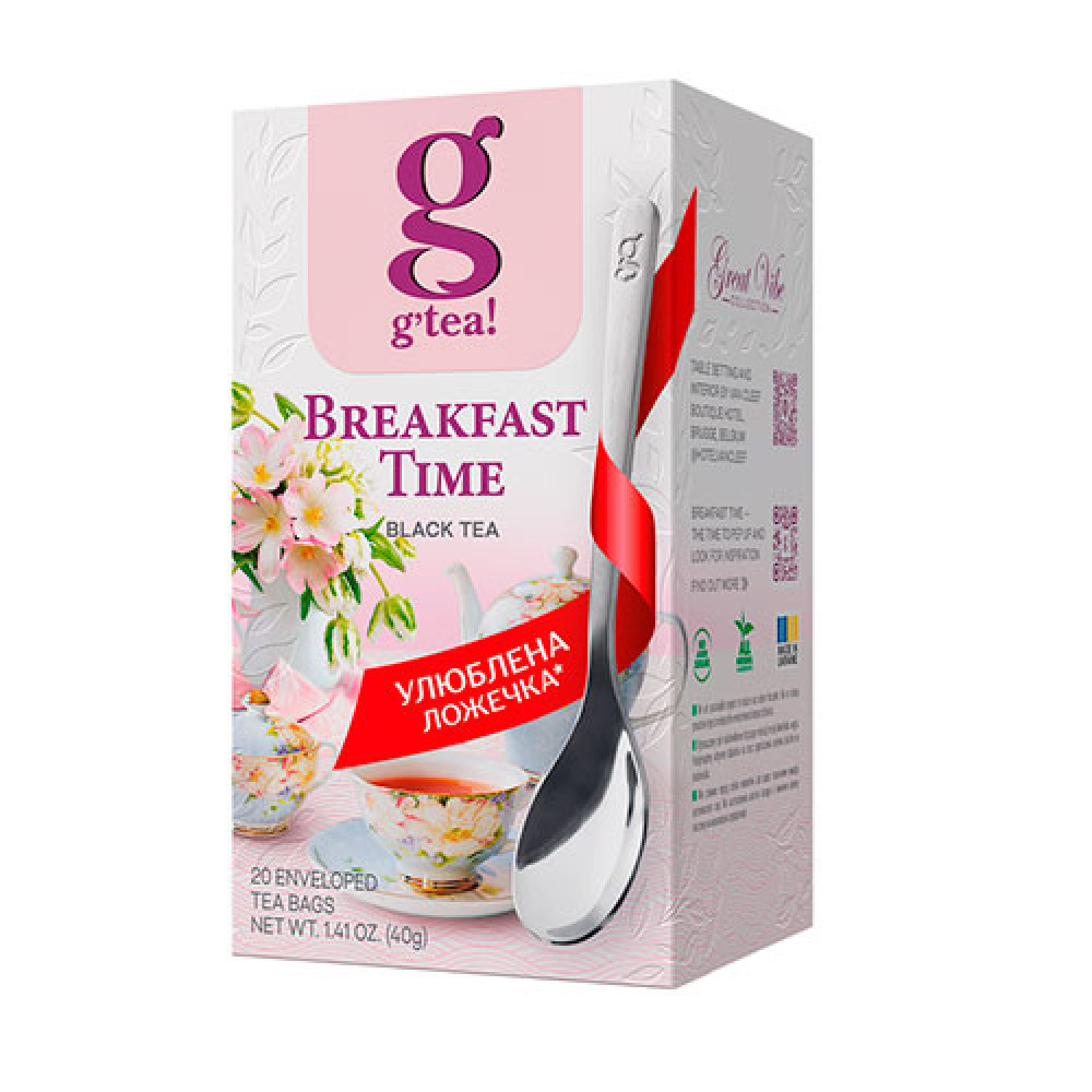 Описание Чай g’tea! Брекфаст Тайм чорний байховий дрібний, 20х2г