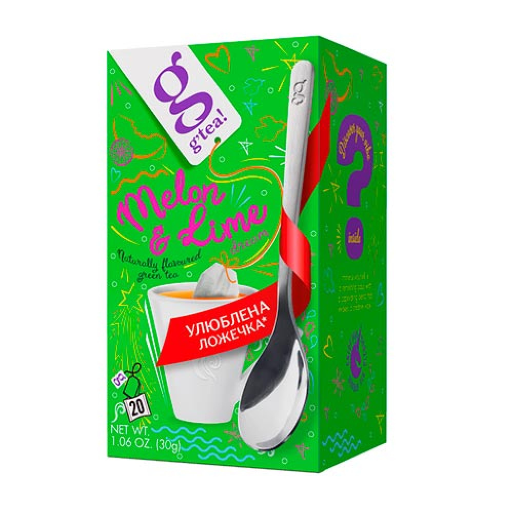 Описание Чай g’tea! Мелон енд Лайм Дрім зелений з ароматом дині та лайма 20 пак