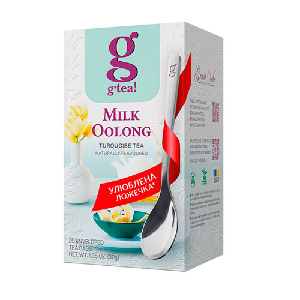 Описание Чай g’tea! Молочний Оолонг Бірюзовий байховий дрібний, 20х1,5г
