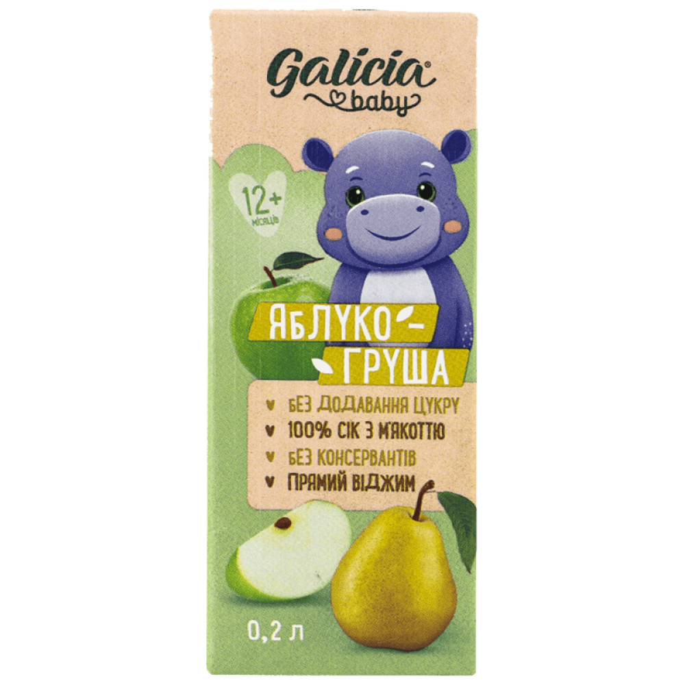 Сік Galicia BABY яблучно-грушевий з м’якоттю натуральний гомогенізований стерилізований 0,2 л