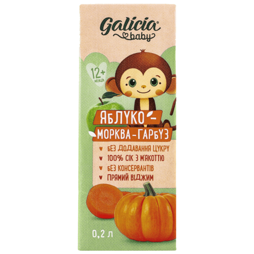 Сік Galicia BABY яблучно-морквяно-гарбузовий з м’якоттю натуральний гомогенізований стерилізований 0,2 л