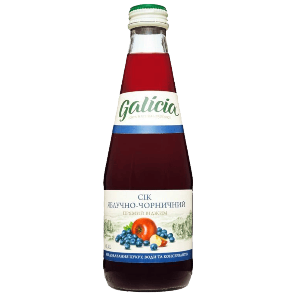 Описание Сік Galicia яблучно-чорничний неосвітлений пастеризований 0,3л с/б