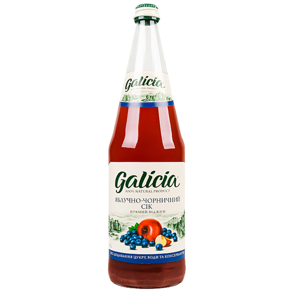 Описание Сік Galicia яблучно-чорничний неосвітлений пастеризований 1л с/б