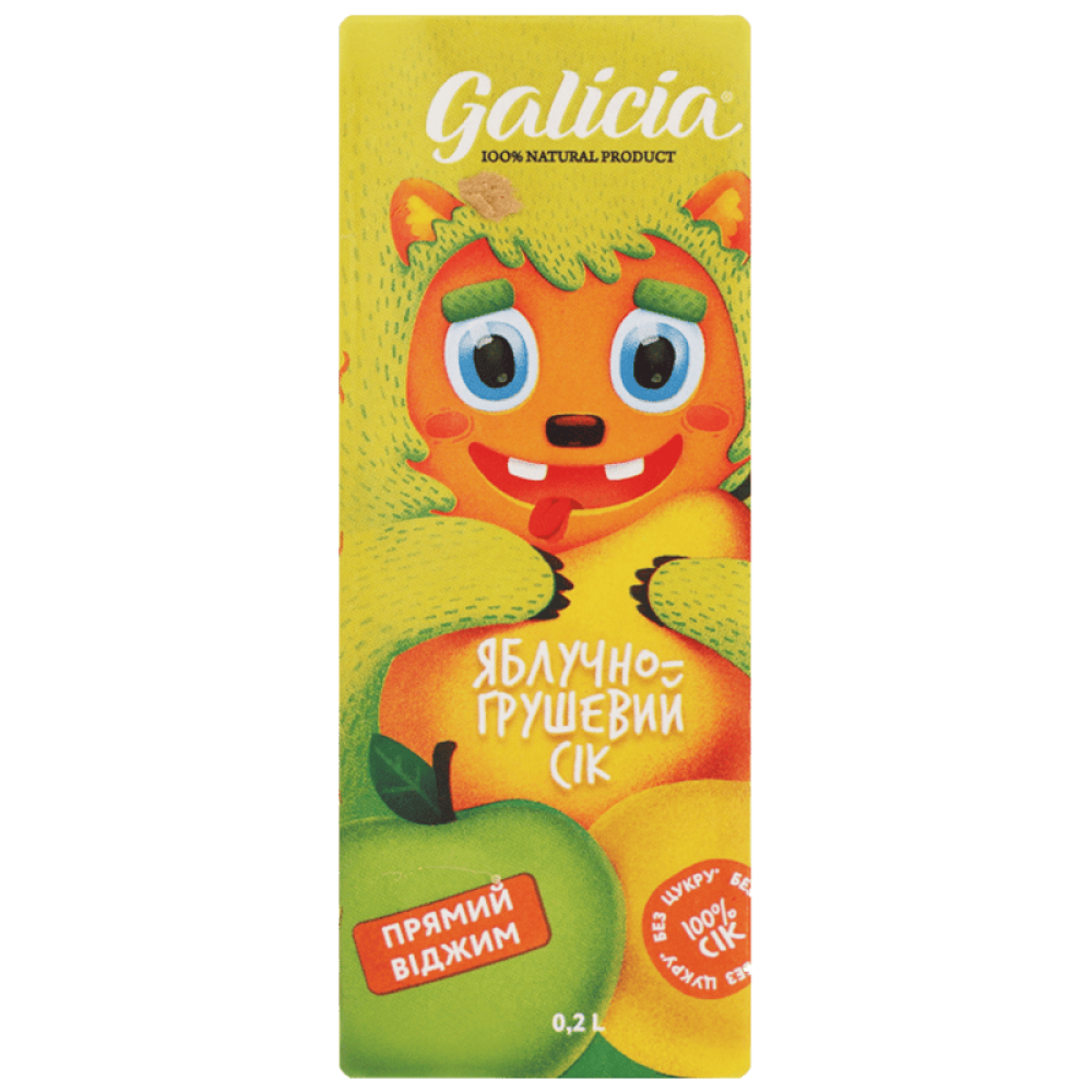 Характеристики Сік Galicia яблучно-грушевий пастеризований TGA 0,2л