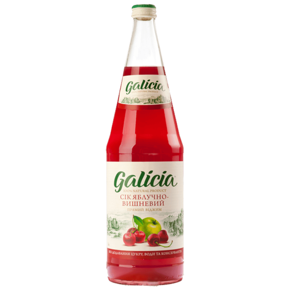 Описание Сік Galicia яблучно-вишневий неосвітлений пастеризований 1л с/б
