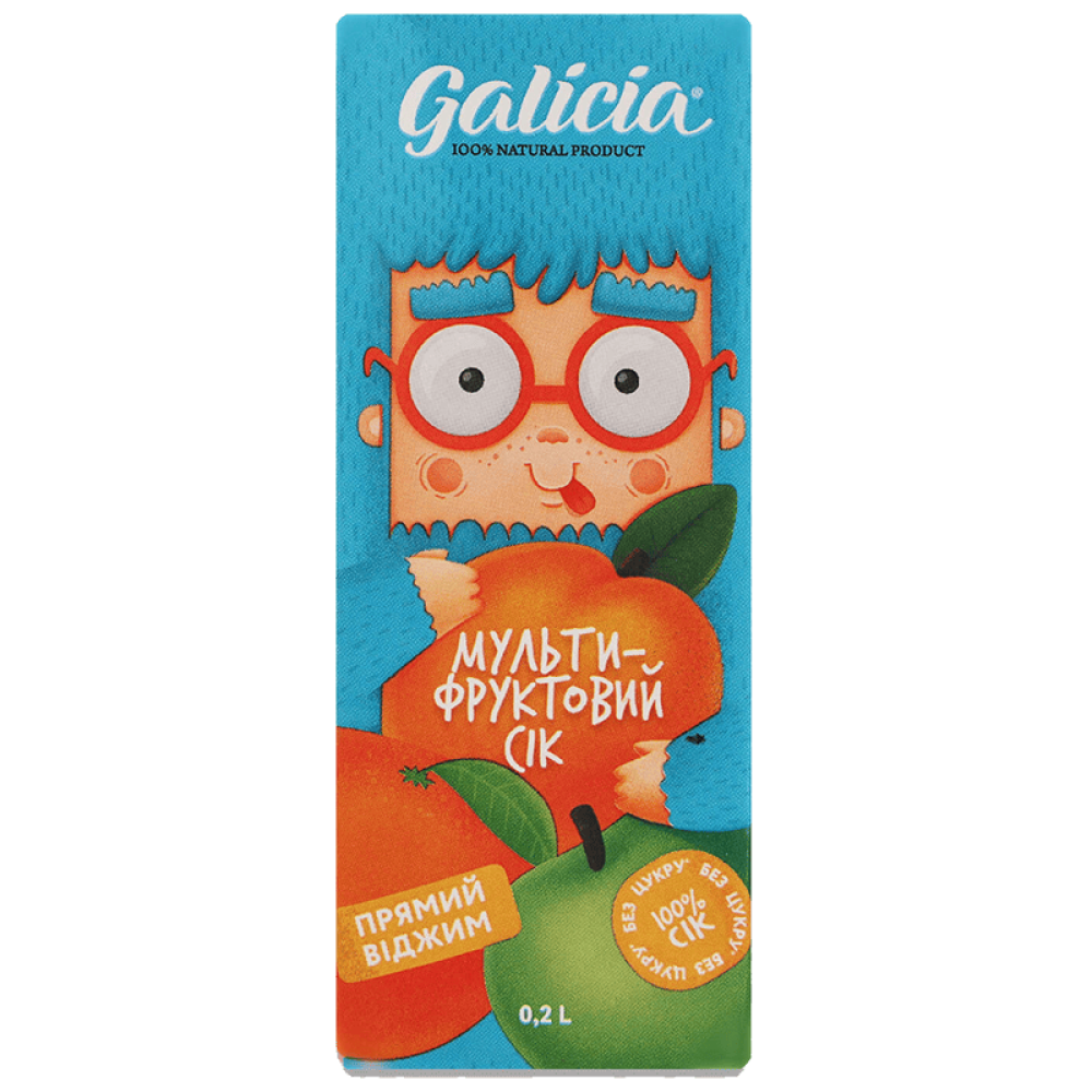 Сік Galicia з м’якоттю із суміші фруктів Мультифруктовий гомогенізований стерилізований TGA 0,2л