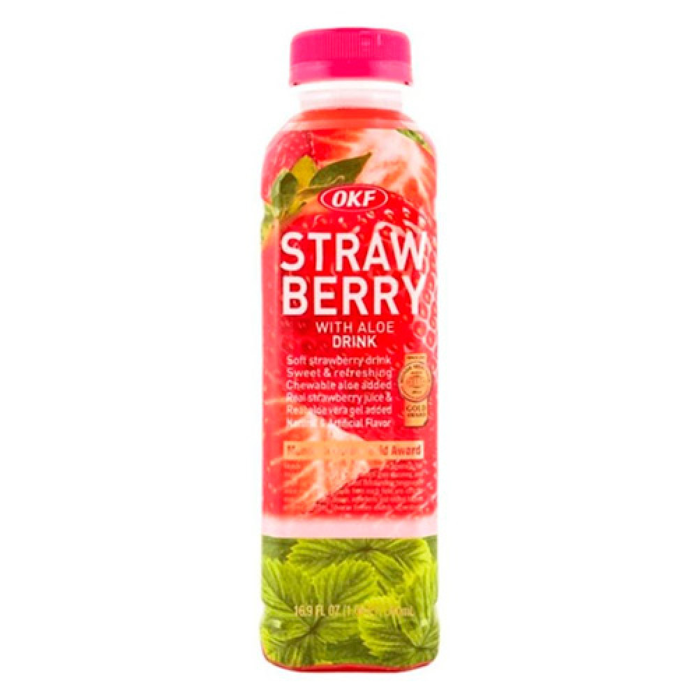 Описание Напиток OKF Сок клубничный с алоэ, 500 мл