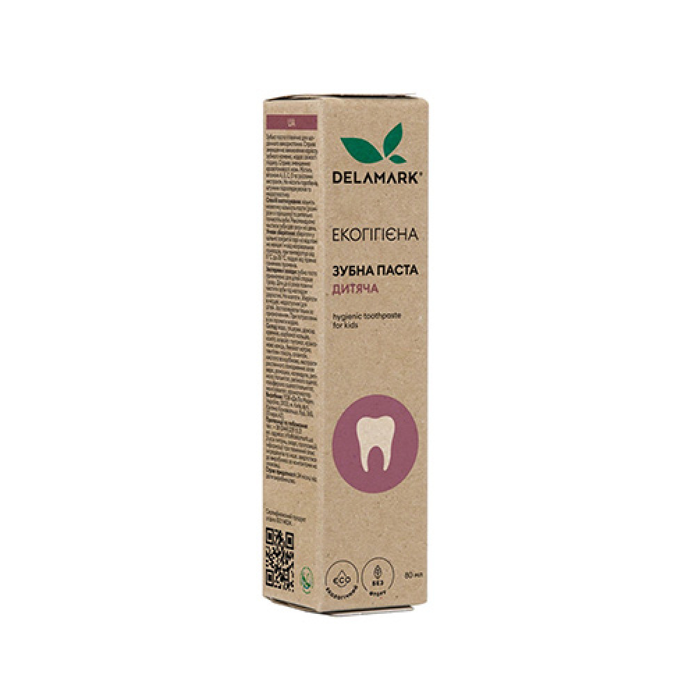 Потрясающая новинка в экоупаковке — детская гигиеническая зубная паста DeLaMark с ароматом клубники для ежедневного применения.