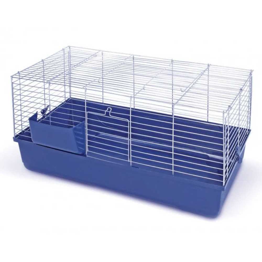 Просторная клетка для кроликов состоит из пластикового съемного поддона и металлической решетки оснащена двойной защитой безопасности есть кормушка для сена