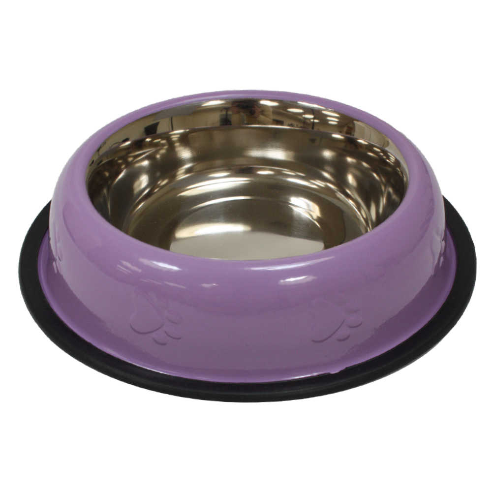 Миска для собак из нержавеющей стали с чеканкой на резине CROCI, фиолетовая
