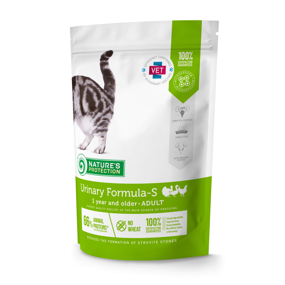 „Nature's Protection Urinary Formula-S Adult" – сухой корм для кошек Супер-премиум класса, сбалансированный для удовлетворения потребностей как молодых, так и зрелых питомцев. Легкоусвояемый корм имеет приятный для животных вкус.