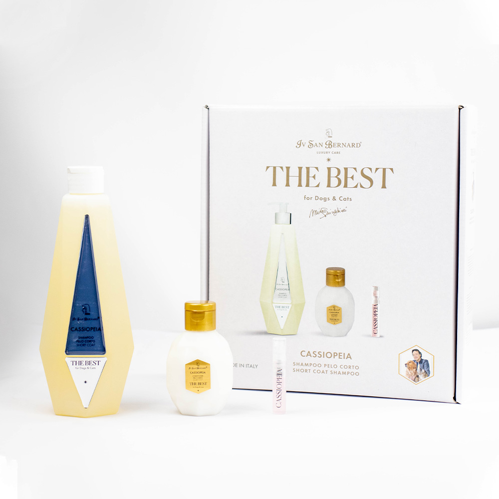 Подходит для: короткой шерсти собак и кошек. Шампунь Iv San Bernard Cassiopeia 550 мл. Шампунь для кошек и собак с короткой шерстью, в своем составе содержит коллаген акации, который является оптимальной заменой коллагена животного происхождения. Коллаген акации - естественным образом производится растениями и является проводником витаминов, растительных экстрактов и других полезных компонентов. Обеспечивает питание шерсти, сохраняя ее цвет и природную красоту. Кроме того, его вяжущие свойства помогают бороться с перхотью. Кондиционер Iv San Bernard Cassiopeia 100 мл. Кондиционер который предназначен специально для короткошерстных собак и кошек. В своем составе содержит коллаген акации, который является оптимальной заменой коллагена животного происхождения. Коллаген акации - естественным образом производится растениями и является проводником витаминов, растительных экстрактов и других полезных компонентов. Так же вяжущие вещества в составе средства, помогают бороться с перхотью на коже животного. Парфюм Iv San Bernard Cassiopeia 2 мл. Парфюм имеет аромат черной смородины, сандала и фиалки. Придаст шерсти эксклюзивный приятный запах на весь день. Идеально подходит для любых пород собак и кошек не нарушая естественный жировой баланс кожи.