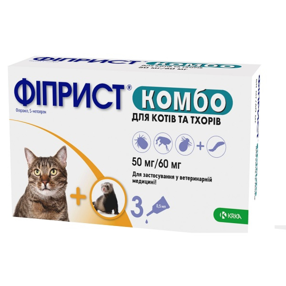 Капли KRKA Фиприст комбо от блох и клещей для кошек, 0.5 мл×3 пипетки, 1 пипетка