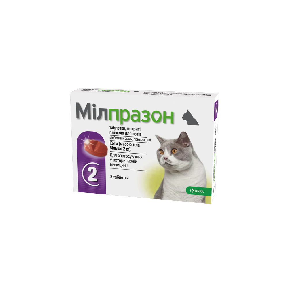Описание Таблетки KRKA Милпразон от глистов для кошек весом более 2 кг, 16 мг/40 мг, 1 таб