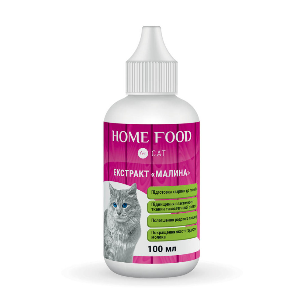 Фитомин для кошек HOME FOOD экстракт Малина для подготовки к родам, 100 мл
