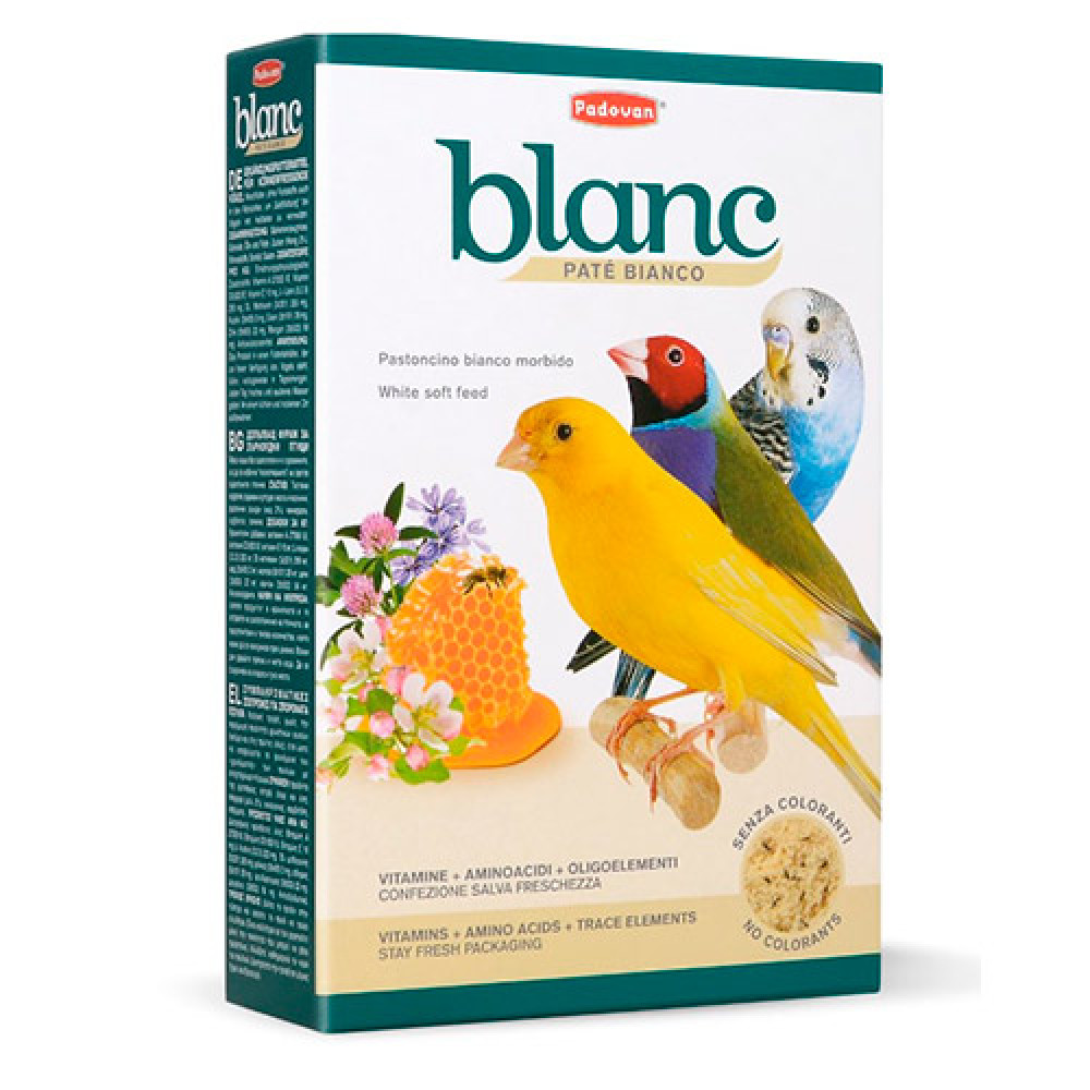 Описание Padovan Blanc Patee - специальный корм Падован премиум класса для всех декоративных птиц 300 г