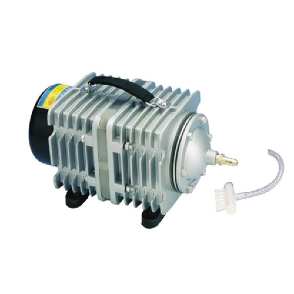 В комплектацию входит 16 выходов и насадок с разветвлениями для подачи воздуха в водоёмы. Производственной мощности (9900 л/ч) и давления (0.036 МПа) достаточно для того, чтобы подать кислород в крупный аквариум, водоём или пруд. Вес одного компрессора составляет 8,5 кг, диаметр отверстий для выхода воздуха – 16 мм, корпус металлический.