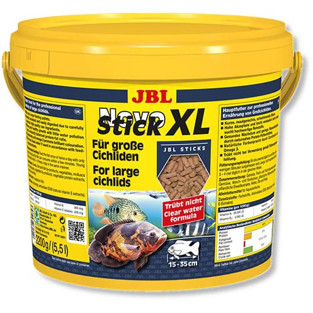 Описание Основной корм JBL NovoStick XL в форме гранул для крупных хищных цихлид, 5.5 л