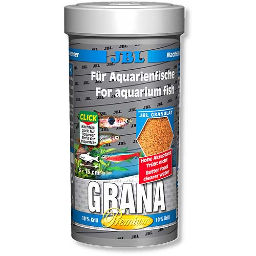 Характеристики Основной корм премиум-класса JBL Grana в форме гранул для небольших рыб, 250 мл
