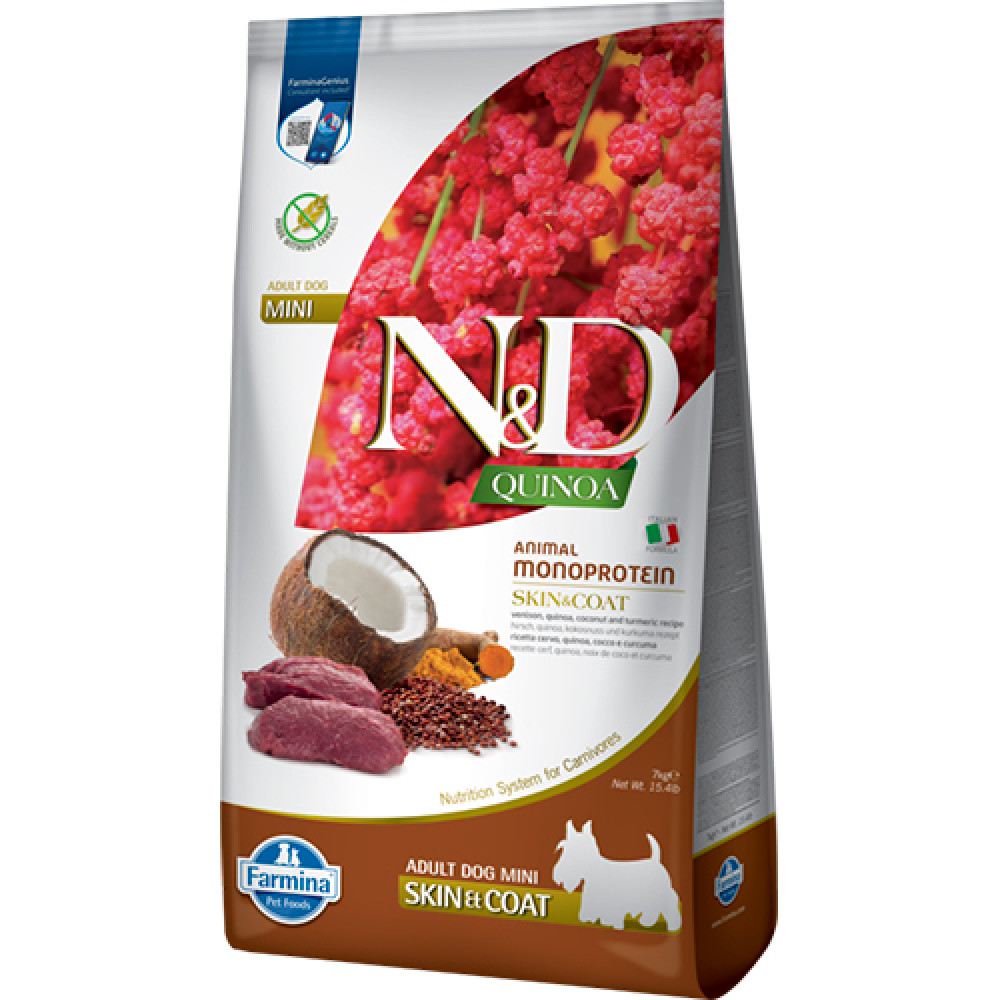 Характеристики Farmina N&D Quinoa Skin&Coat, Venison Adult Mini - корм Фармина для взрослых собак мелких пород с олениной 7 кг