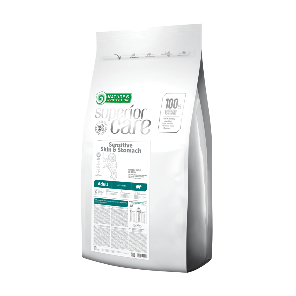 Характеристики Сухой корм для взрослых собак с чувствительным пищеварением и проблемной кожей Superior Care Sensitive Skin&Stomach Adult All Breeds 10кг