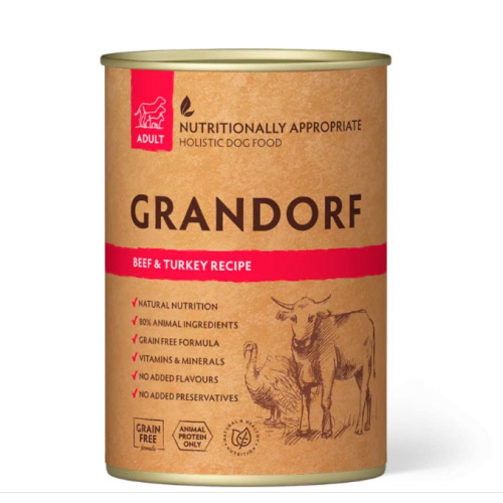 Описание Влажный корм для собак Grandorf Dog Beef & Turkey Adult с говядиной и индейкой, 400 г