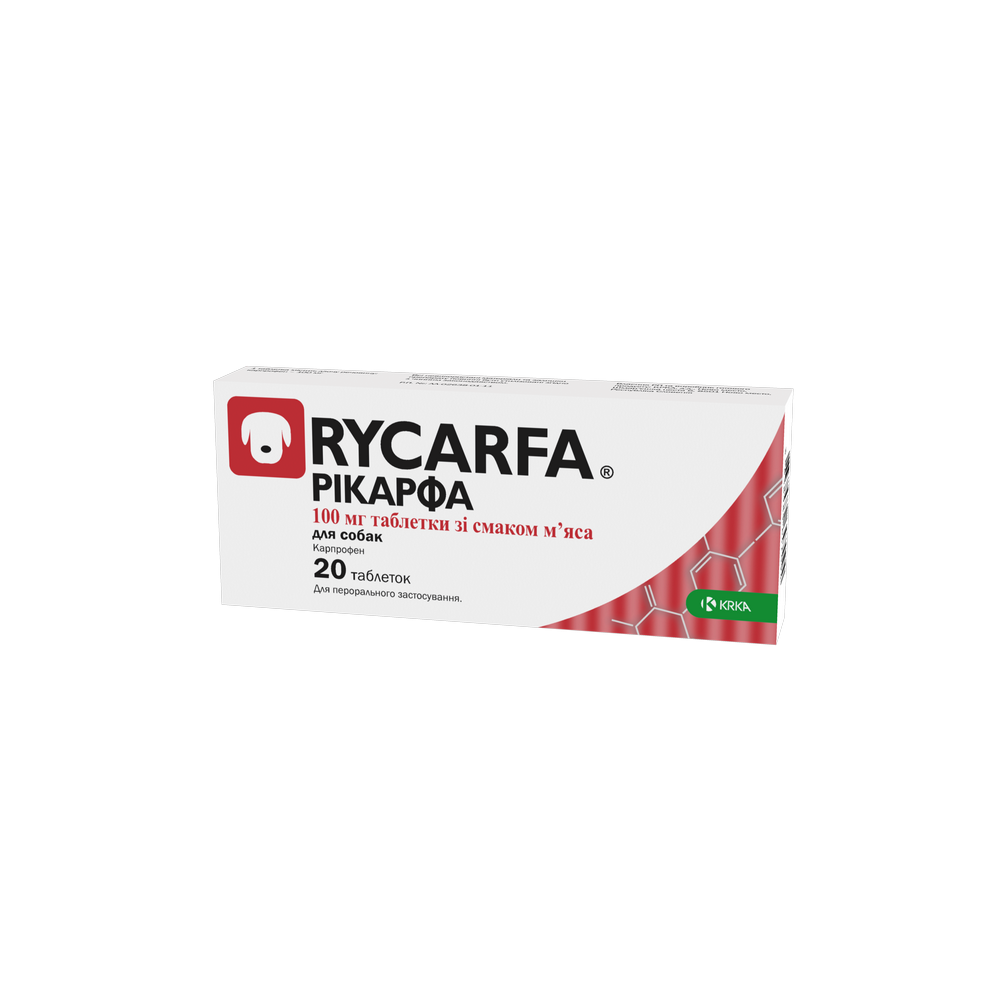 Таблетки KRKA Рикарфа противовоспалительные для собак, со вкусом мяса, 100 мг, 20 табл