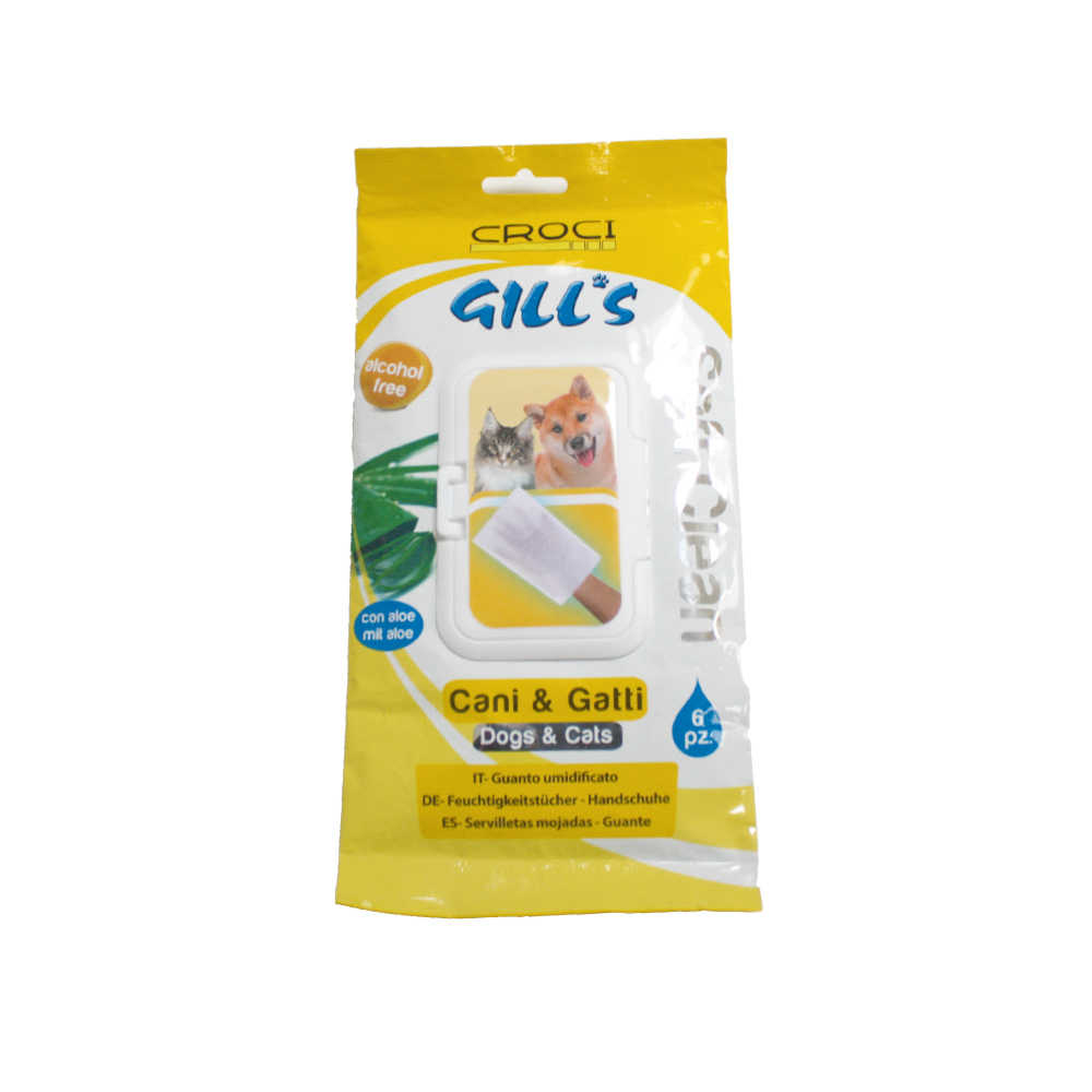 Влажные перчатки Gill's Soft Clean for Animals для кошек и собак позволяют быстро и легко мыть шерсть вашего четверолапого друга. Они используются непосредственно на животном, чтобы промыть шерсть, придать ей блеск и легкий аромат. Не содержат спирта и идеально подходят для очищения чувствительных участков собак и кошек (например, глаз).