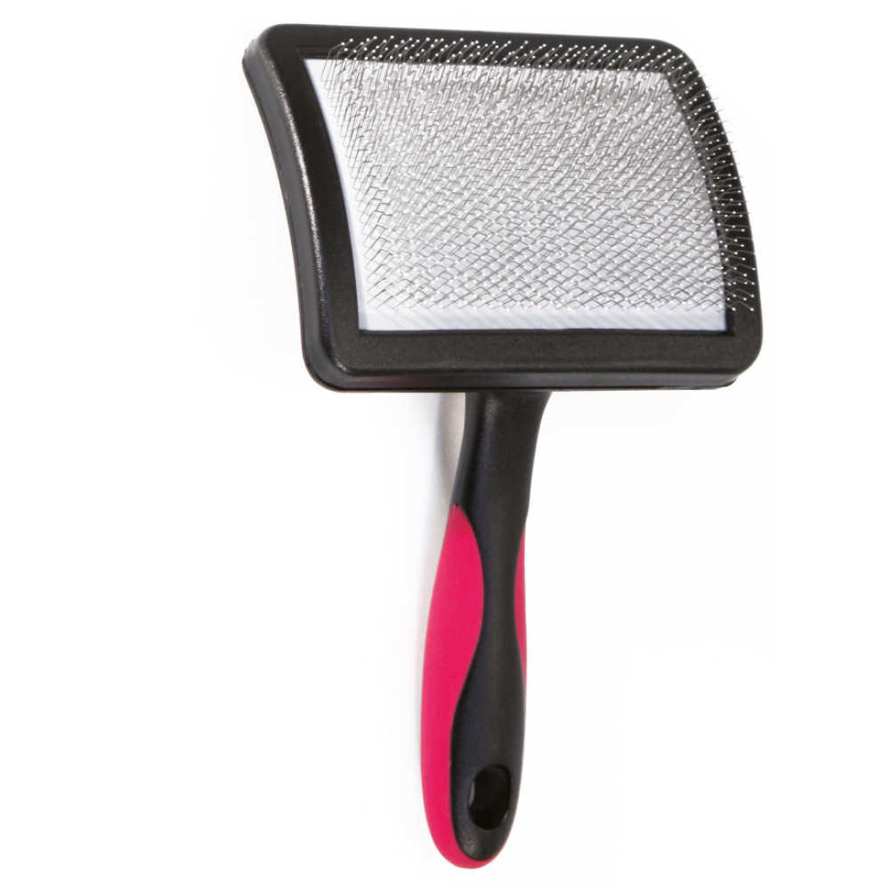 Большое количество зубцов этой пластиковой кардерной щетки для собак позволяет удалить за один взмах больше шерсти, чем при использовании обычной щетки.