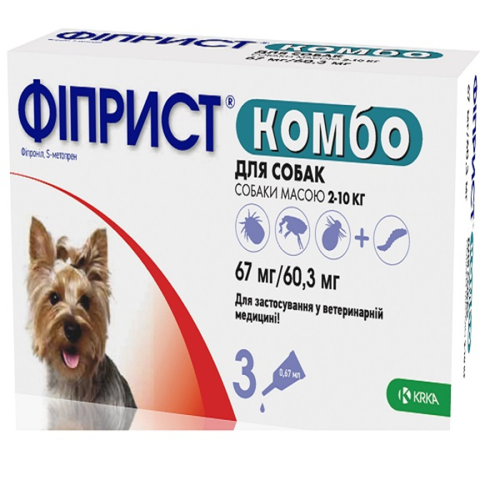 Капли KRKA Фиприст комбо от блох и клещей для собак весом 2-10 кг, 0.67 мл×3 пипетки, 1 пипетка